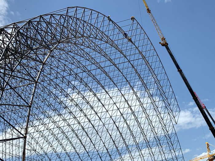 (2)网架加工前应对现场尺寸进行复测,确认无误后方可进行加工、安装;网架制作、运输、安装应遵守《空间网格结构技术规程》JGJ7-2010、《钢网架丹东螺栓球节点》JG/T 10-2009、《钢网架丹东螺栓球节点用高强度螺栓》 GB/T 16939-2016、《丹东钢结构丹东工程丹东施工规范》 GB50755-2012、《丹东钢结构丹东工程施工质量验收标准》 GB50205-2020。